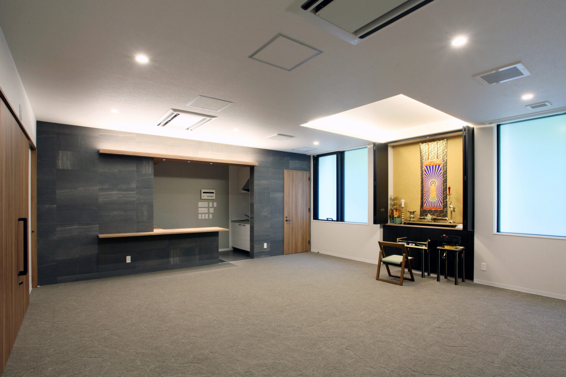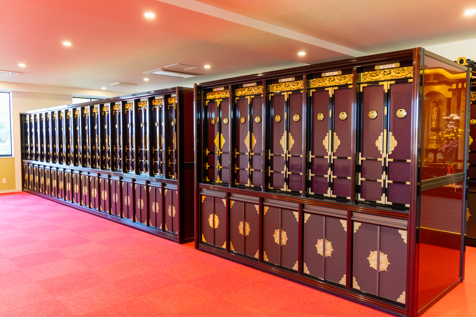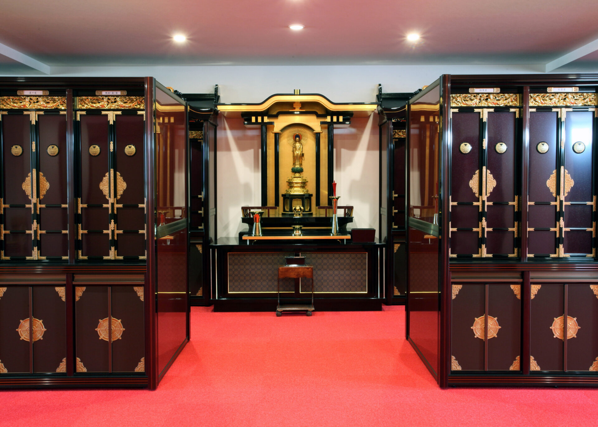 本寺院の納骨堂はいつでもお参りいただく事が出来ます。お盆等の期間中には、僧侶が1階ホールにて常駐しております。