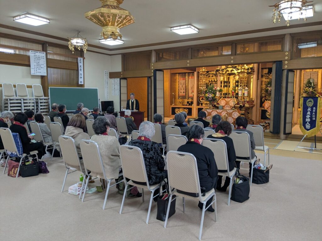 令和8年1月25日(日)定例法話 2026.01.06 1月定例法話 1月25日(日)13:00~15:00 講 題 「人と生まれて」 布教使 須磨 興人 師(札幌市) 今年最初の定例法話になります。ぜひお参りください。 11月定例法話の様子 「布教使 渡邉 浩伸 師(札幌市)」 Post Share RSS 12月31日(水)修正会・除夜の鐘 新着記事 お知らせ一覧 2025.11.26 12月31日(水)修正会・除夜の鐘 2025.11.07 ホームページをリニューアルいたしました